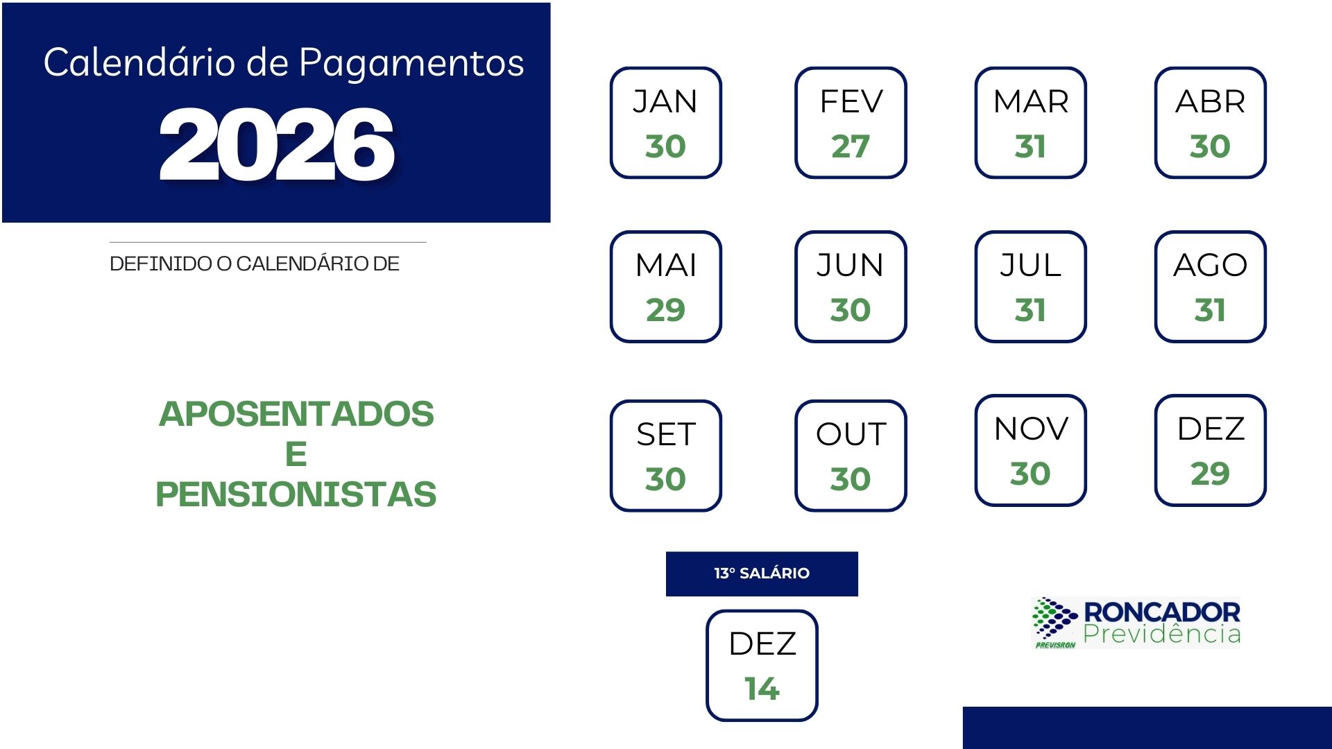 CRONOGRAMA DE PAGAMENTOS DE BENEFÍCIOS 2026